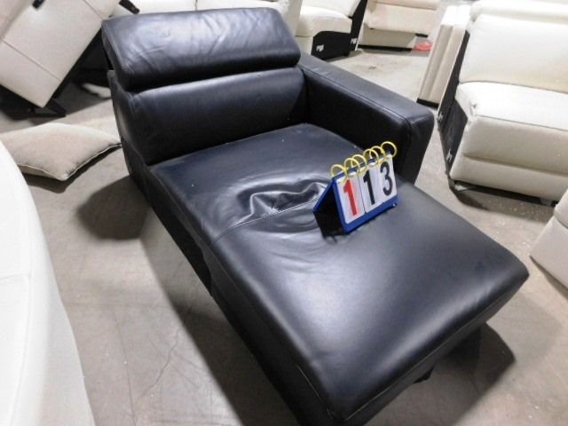 Right Arm Facing Leather Chaise Lounge With Adjustable Headrest and Storage