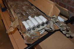 Lot of GE F96T12 Recessed 2 Contact Fluorescent Lights and Lamp Guards, Housing Fixtures in Boxes