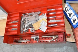 Tote Lot of Assorted Automotive Tools Consisting of Torque Wrench, Assorted Hand Tools, Pullers, Etc.