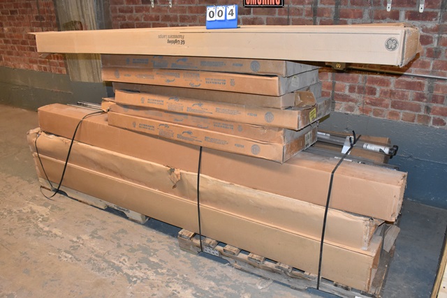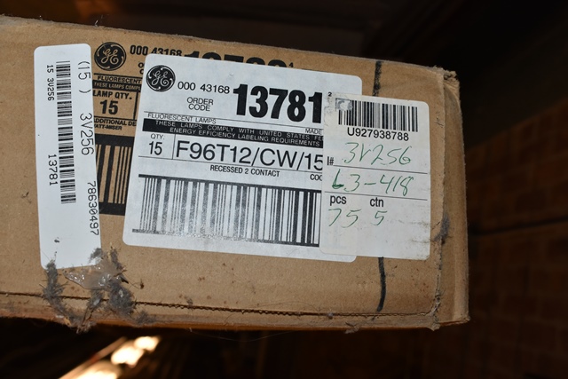 Lot of GE F96T12 Recessed 2 Contact Fluorescent Lights and Lamp Guards, Housing Fixtures in Boxes