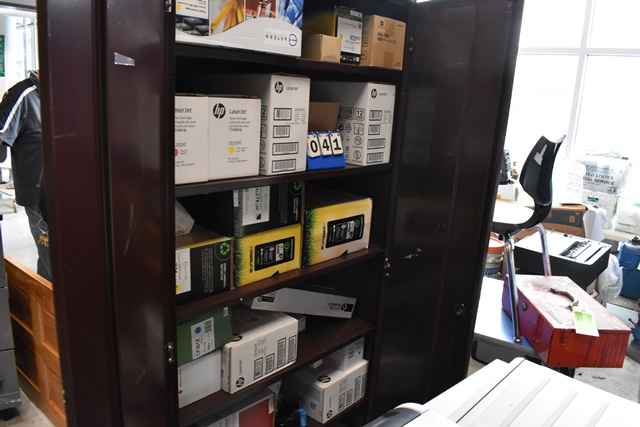 2 Door Metal Cabinet Consisting of Assorted HP, Xerox Toner Cartridges