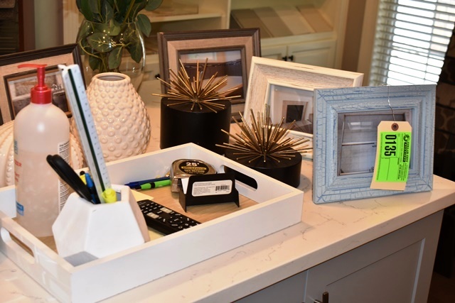 Countertop of Miscellaneous Items, Picture Frames and Decorations