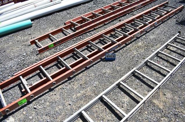2 Fiberglass Extension Ladder Halves, 1-14' Section With Feet & 1-12' Section Without Feet