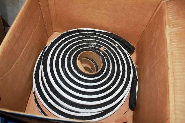 Box of 1/8" x 1" x 50' Slast Rolls, Roll of Roofing Adhesive, Rolls of Concrete Water Stop