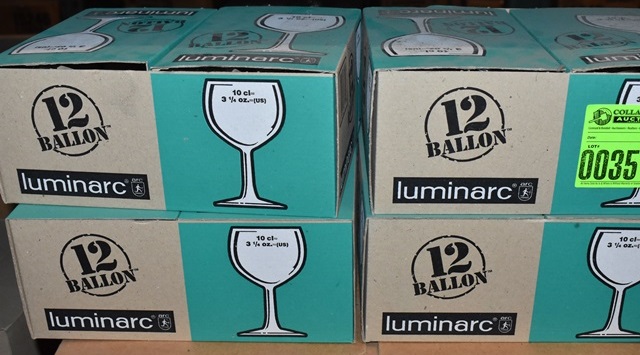 Lot of 4 boxes of Luminarc 3.25 oz. Ballon Glasses (approx 10 per box)