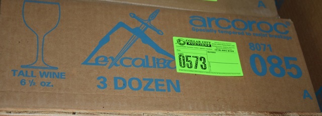 Lot of 2 cases Arcoroc Excaliber 6.5 oz tall wine glasses, approx 3 doz per case
