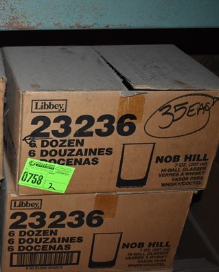 Lot of 1.5 cases of Libbey Nob Hill 7 oz Highball Glasses, approx 6 doz per case