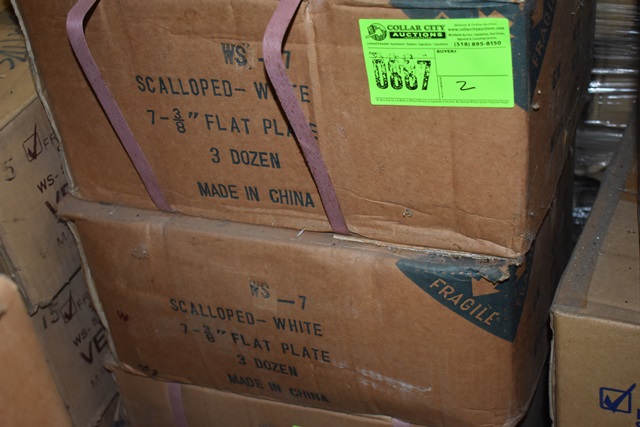 Lot of 2 cases of Scalloped White 7 3/8" Flat Plate, approx 3 doz per case