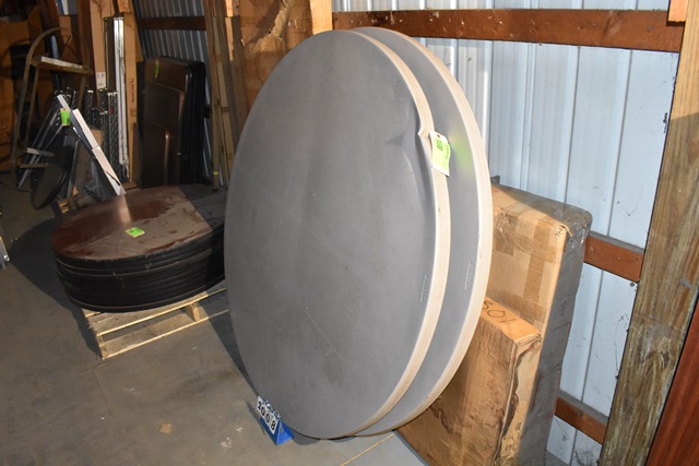 Lot of 2 60" Round Plastic Tables, 1 does have 1 spot of damage