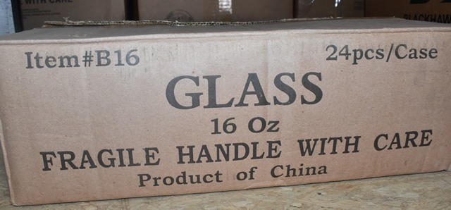 Case of 16 oz Glasses, Item #B16, approx. 24 per case