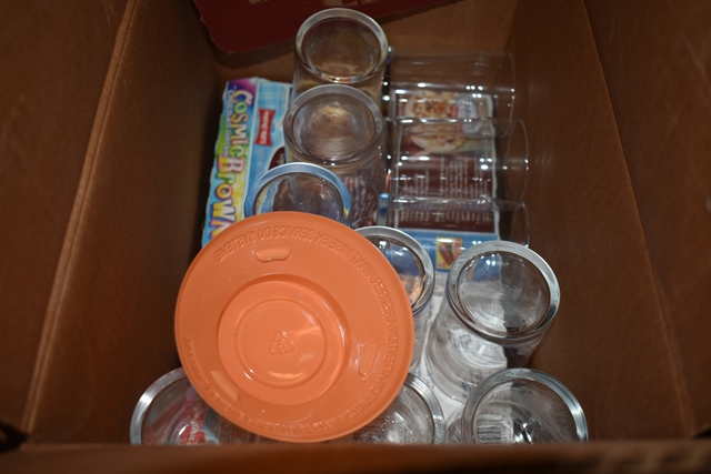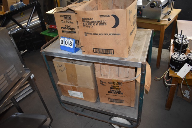 Two Tier Stainless Steel Cart on Wheels, Assorted Glassware