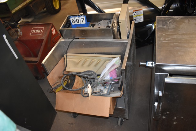 Stainless Steel Cart, with Coffee Maker, and Assorted Parts
