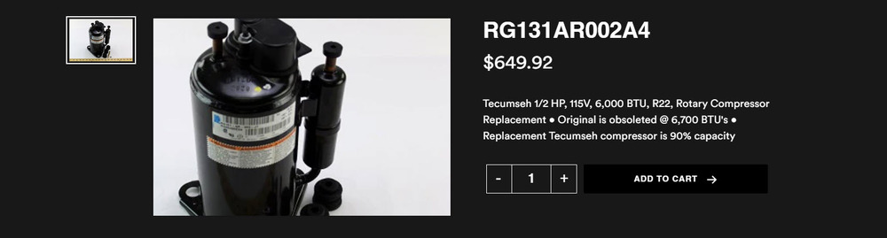 Lot of One Tecumseh Motor Model RG131-ER-002-A4 208-230V. Suggested Retail Price $649