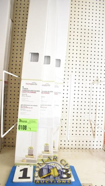 LOT OF 3 HOME POINT 1" CORDLESS MINI BLIND, LIGHT FILTERING, 39" X 64"
