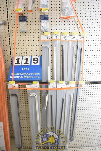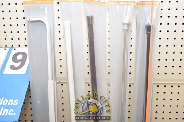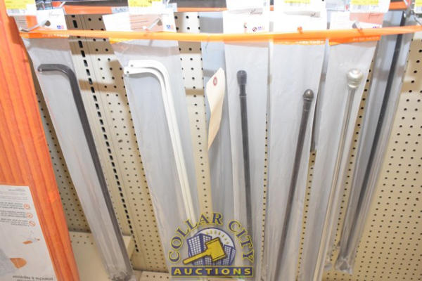 LOT OF ASSORTED CURTAIN RODS, HOOKS, SHADE MOUNT BRACKETS
