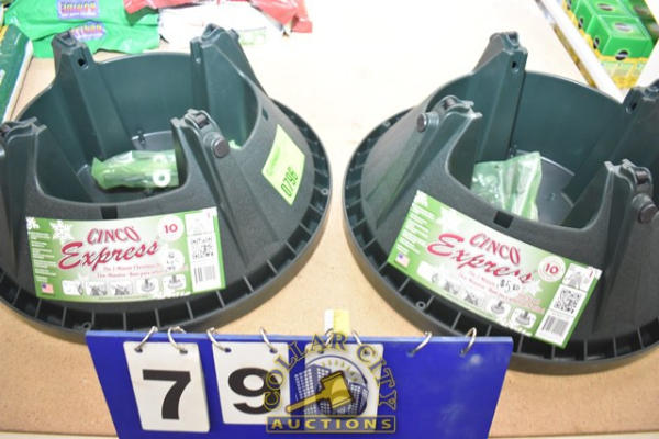 LOT OF 2 PLASTIC CHRISTMAS TREE STANDS (HOLDS UP TO A 10' TREE)