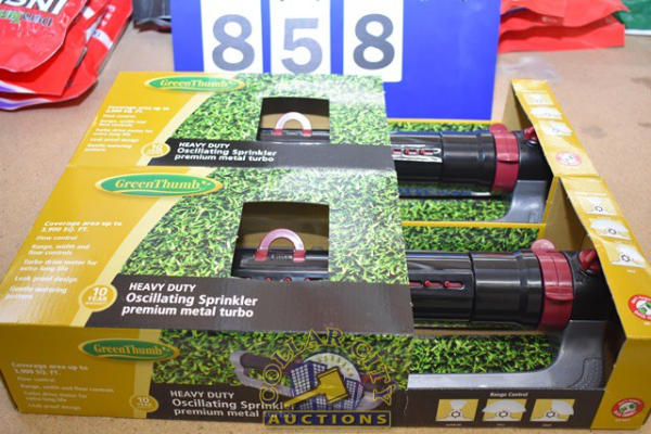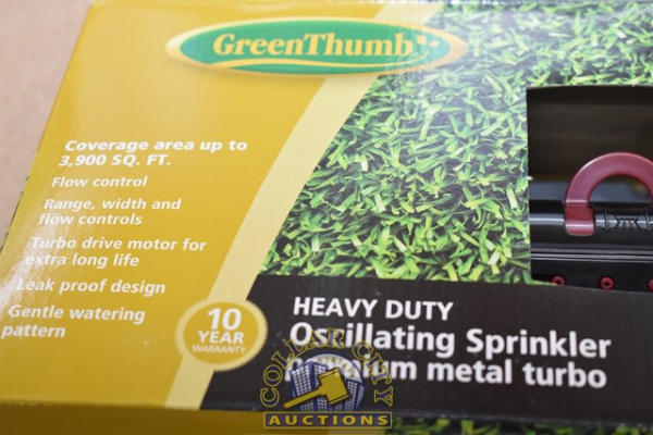 LOT OF 2 GREEN THUMB HEAVY DUTY OSCILLATING SPRINKLER AND PREMIUM METAL TURBO