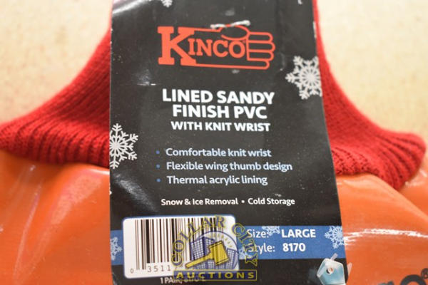 ONE PAIR OF KINCO LINED SANDY FINISH PVC GLOVES, SIZE L