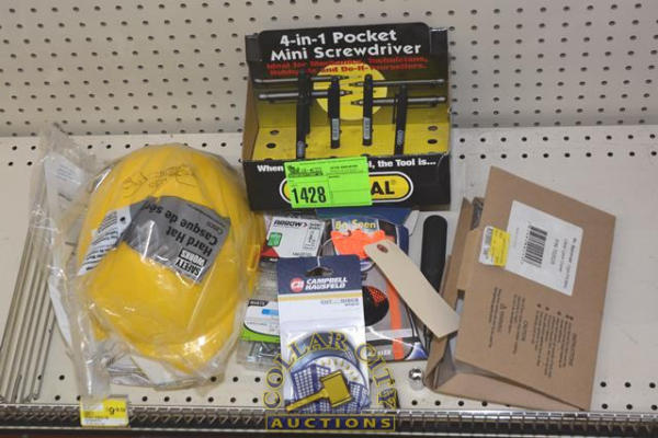 LOT CONSISTING OF 4-IN-1 POCKET MINI SCREWDRIVERS, CUT-OFF WHEELS, HARD HAT, ETC.