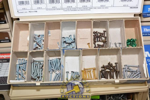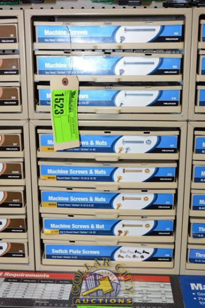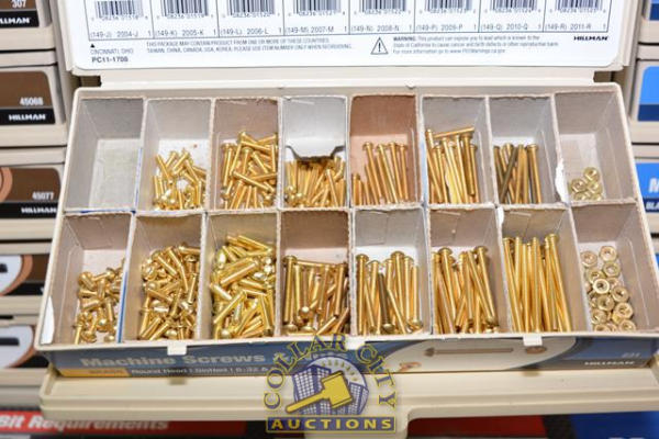 ORGANIZER BIN WITH MACHINE SCREWS, MACHINE SCREWS IN BRASS