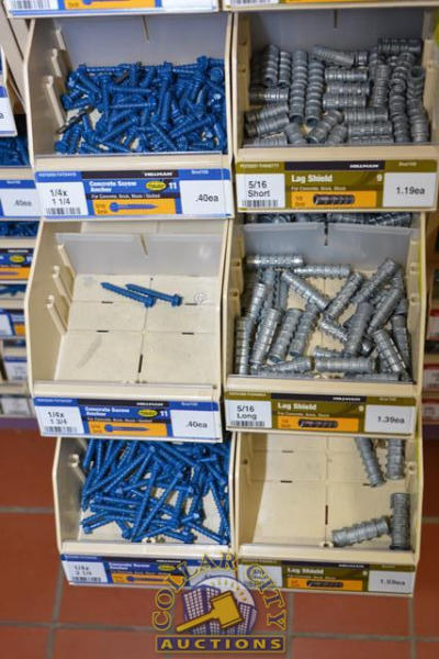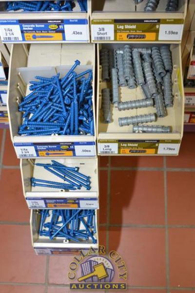 ORGANIZER BINS WITH CONTENTS CONSISTING OF LAG SHIELD, ACOUSTIC LAG SCREWS, CONCRETE SCREW ANCHORS