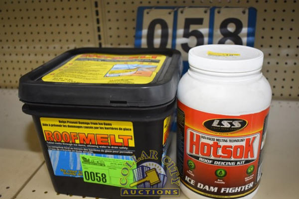 LOT CONSISTING OF PAIL OF ROOF MELT AND JUG OF HOTSOK ROOF DE-ICING KIT