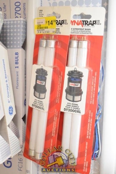LOT OF ASSORTED FLORESCENT ROUND LIGHT BULBS AND U SHAPED