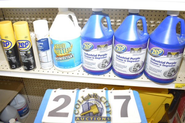 SHELF LOT OF ZEP INDUSTRIAL PURPLE CLEANER, CRUD CUTTER, ETC.