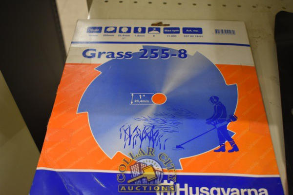 LOT CONSISTING OF HUSQVARNA 1" ARBOR SAW BLADE TRIMMER HEAD, BLOWER ATTACHMENTS AND REPLACEMENT MOWER BLADE