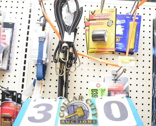 LOT CONSISTING OF EMERGENCY HOSE BANDAGE, BUNGEE CORDS, RED LENS REPAIR TAPE