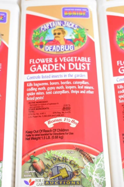 LOT OF 10 BOTTLES OF BONIDE CAPTAIN JACK'S DEAD BUG FLOWER AND VEGETABLE GARDEN DUST, 1.5 LB CONTAINERS