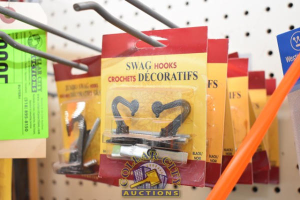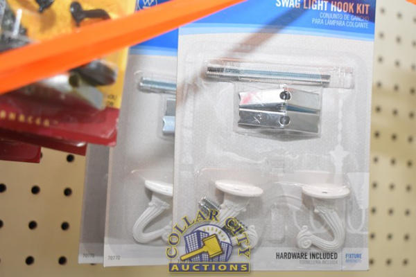 LOT CONSISTING OF SWAG HOOKS, SWAG LIGHT HOOK KIT, WALL BRACKETS