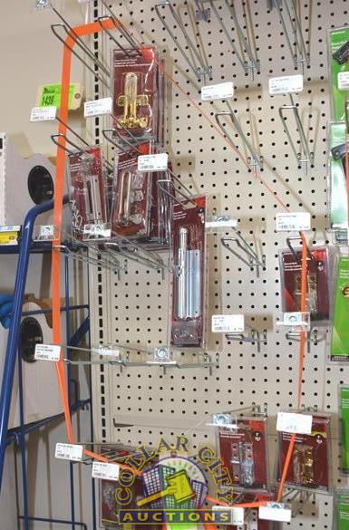 LOT OF HILLMAN HARDWARE INCLUDING BARREL BOLTS, DOOR CHAIN, ETC.