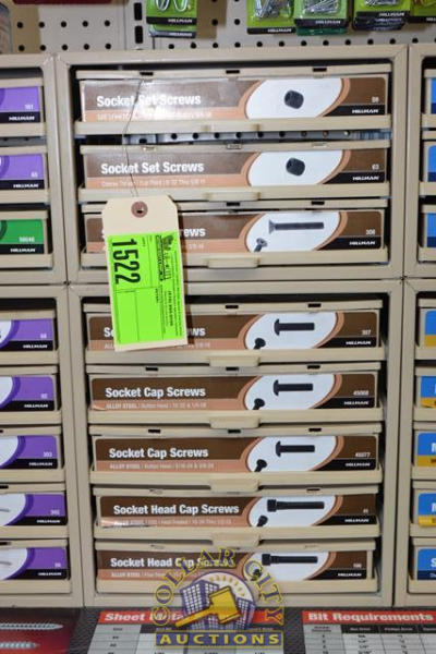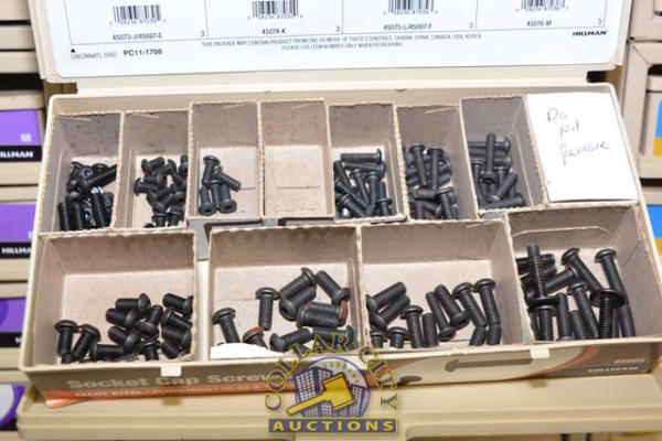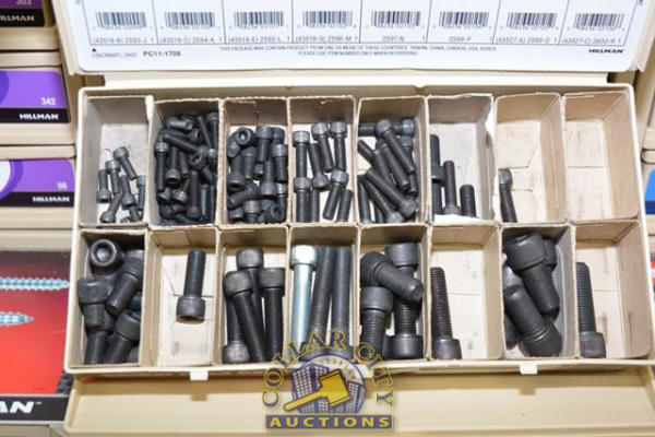 ORGANIZER BIN WITH CONTENTS CONSISTING OF SOCKET SET SCREWS, SOCKET CAP SCREWS, ETC.