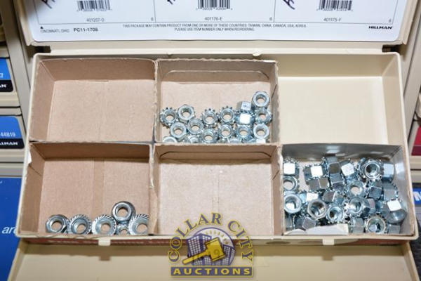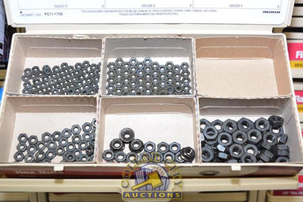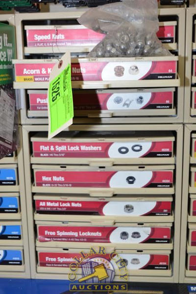 ORGANIZER BIN WITH SPEED NUTS, ACORN NUTS, FLAT AND SPLIT LOCK WASHERS, METAL LOCK NUTS