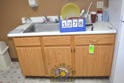 LOT OF KITCHEN CABINETS WITH FORMICA COUNTERTOPS. FIRST CABINET WITH COUNTER IS APPROX. 62 1/2" LONG. 1 IS APPROX. 29 1/2" LONG, 1 IS APPROX. 73 1/2" LONG