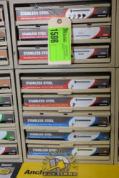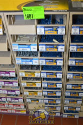 ORGANIZER BIN WITH CONTENTS CONSISTING OF DRIVE PIN ANCHORS, POWER STUDS, SLEEVED ANCHORS