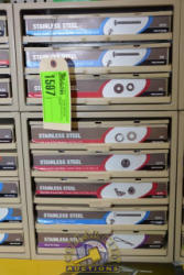 ORGANIZER BIN WITH STAINLESS STEEL MACHINE SCREWS, FENDER AND FINISH WASHERS, HEX BOLTS