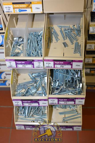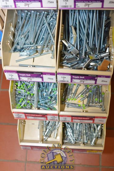 ORGANIZER BIN WITH CONTENTS CONSISTING OF ANCHORS, PLASTIC ANCHORS, TOGGLE BOLTS, DRYWALL ANCHORS