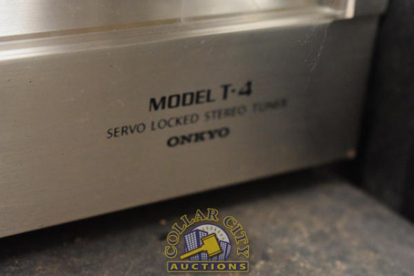 Lot includes an Onkyo Model A-7 Integrated Stereo Amplifier and a Model T-4 Servo Locked Stereo Tuner (We do not guarantee the working condition or completeness of any of these items.)