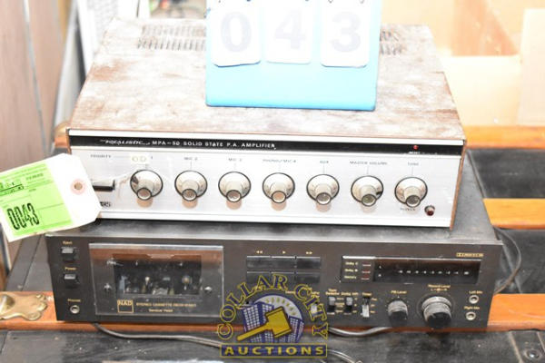 Realistic MPA-50 Solid State PA Amplifier and a NAD Stereo Cassette Deck 6150C (We do not guarantee the working condition or completeness of any of these items.)