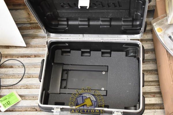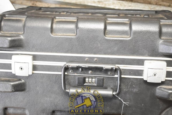 In Focus Camera Case on Wheels (no camera, has combination lock, combination is unknown), approx. 20" x 15" x 10" (We do not guarantee the working condition or completeness of any of these items.)