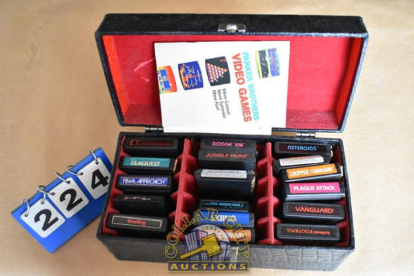 #224 – Lot of various, mostly Atari Video Computer System Games including Asteroids, Skeet Shoot, Sea Quest, Bowling, Etc. Also includes Parker Brothers Games including Star Wars Return of the Jedi, Death Star Battle. All games are in a case. (We do not guarantee the working condition or completeness of any of these items.)