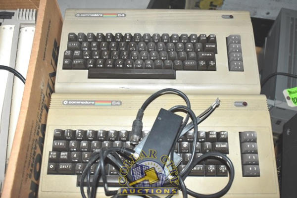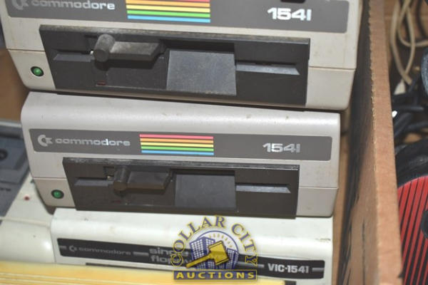 Large lot of Commodore Hardware including a VIC20 Computer, 2 Commodore 64s, a Commodore Single Drive Floppy Disc VIC1541, a Commodore 1541, etc. (We do not guarantee the working condition or completeness of any of these items.)