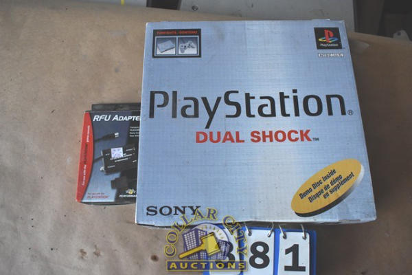 An original Playstation with RFU Adapter (We do not guarantee the working condition or completeness of any of these items.)