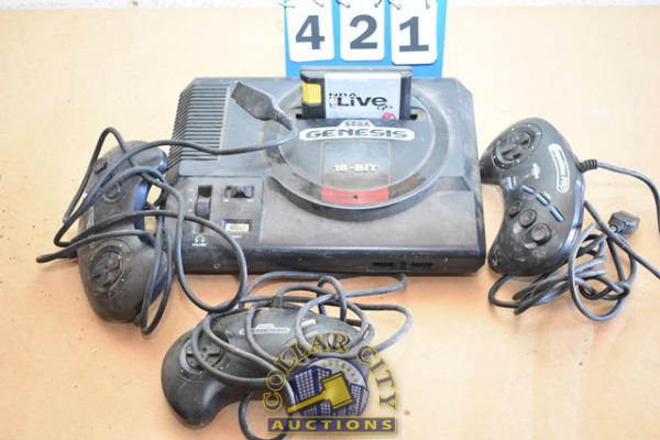 Sega Genesis with 2 Sega Genesis Controllers, a Competition Pro Series II Controller and the game NBA Live '96 (We do not guarantee the working condition or completeness of any of these items.)