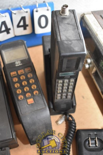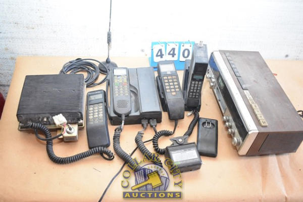 Lot of phones, chargers, and a Yorx AM/FM Stereo Multiplex Electronic Calendar/Clock (We do not guarantee the working condition or completeness of any of these items.)