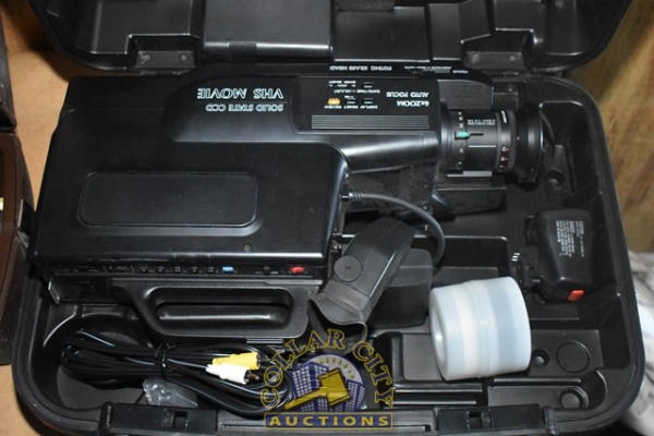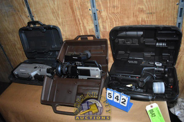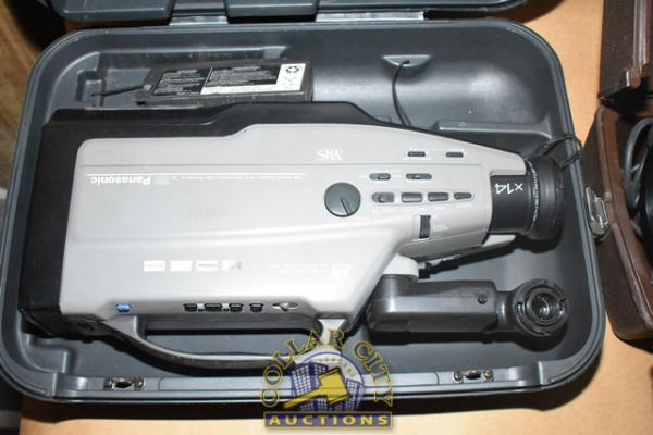 Panasonic Pro Line Color Video Camera 3230 Newvicon, a Panasonic AG188 VHS Movie Camera and a Solid State CCD VHS Moview, 6X Zoom, Auto Focus Camera with some Accessories (all in cases) (We do not guarantee the working condition or completeness of any of these items.)