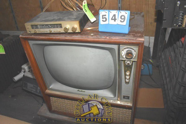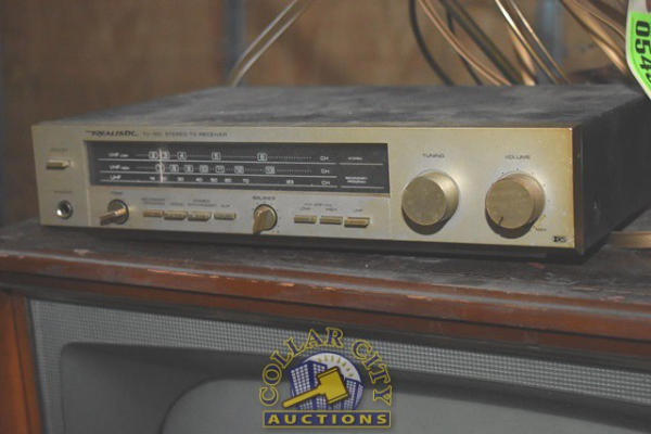 Vintage Air Line TV, approx. 26" with Realistic TV-100 Stereo TV Receiver and Silvertone Color Control Rabbit Ears (We do not guarantee the working condition or completeness of any of these items.)