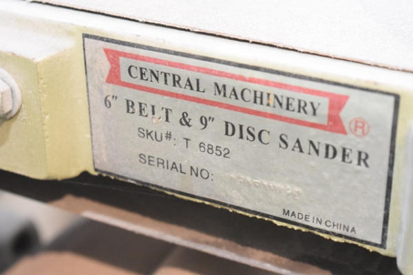 Central Machinery 6" belt and 9" disc sander, 110 volts